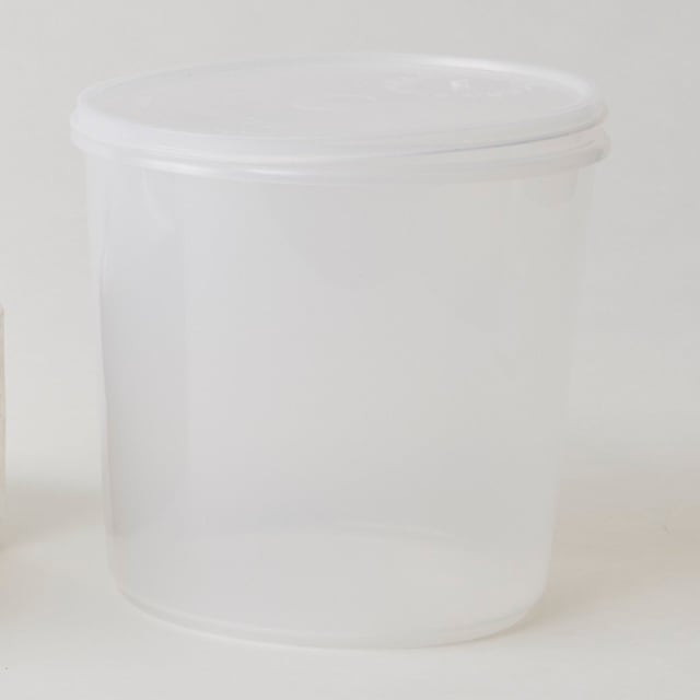 味噌仕込みや漬物などで使える透明の蓋付プラスティック容器